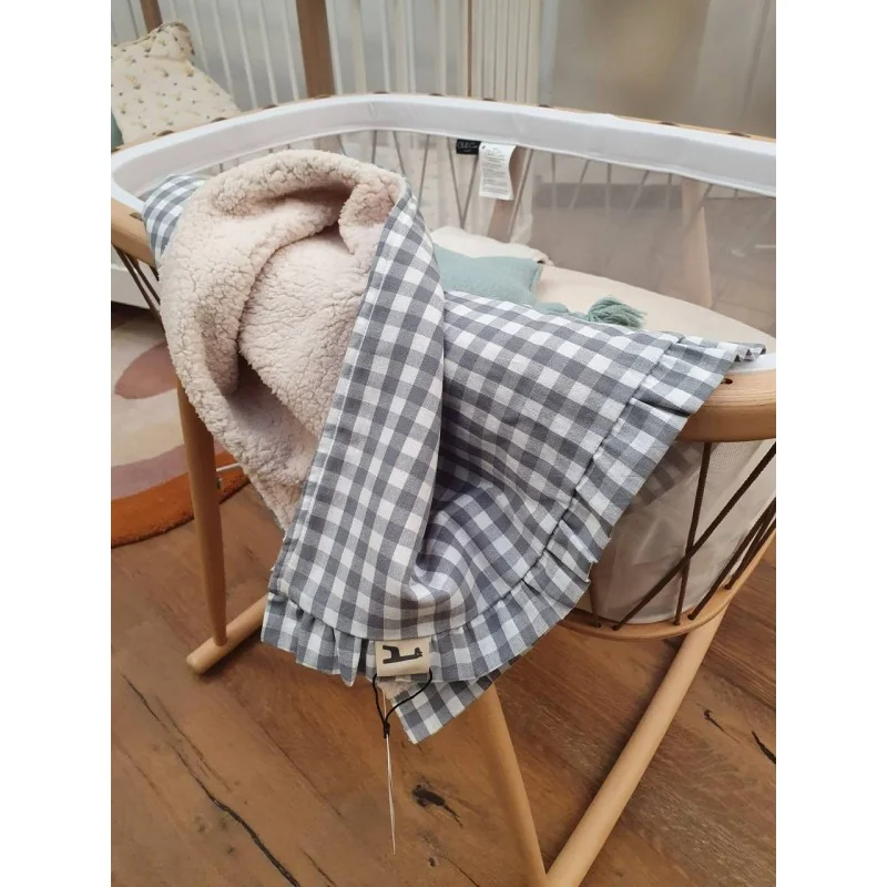 Para abrigar a tu bebé mientras pasea en el capazo, para utilizarla en casa... La toquilla Petra Humo volante de La Giraffa es práctica y bonita a partes iguales.