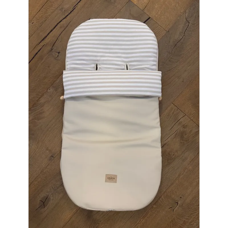 El saco para la silla Ragazzi Ecopiel beige está confeccionado en tejido ecopiel impermeable en la tapa superior con el embozo en tejido Ragazzi, y la parte inferior de la colchoneta es tejido Ragazzi-, para aportar al bebé un extra de confort, suavidad y transpirabilidad.