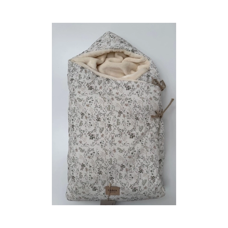Los sacos para el capazo de la colección Arthemisa rezuman delicadeza y elegancia por los cuatro costados. Éste, en concreto, con capucha y formato arrullo, permite tanto utilizarse en el capazo del carrito de tu bebé, como en la minicuna o a modo de práctica mantita.