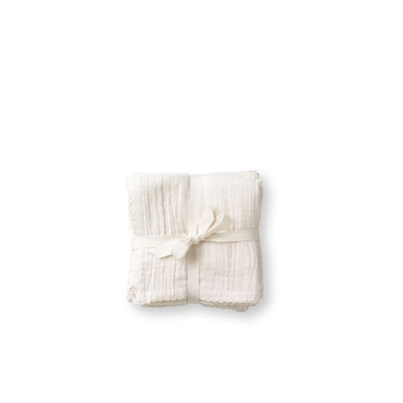 Hay paños de muselina, y luego están estos de Dear April. Confeccionados en muselina de algodón de dos capas suavísima con un pequeño borde de ganchillo en bonitos estampados y colores. Se pueden usar para la lactancia, como arrullo y para cambiar pañales. Las muselinas vienen prelavadas de ahí su elegante aspecto arrugado y se vuelven todavía más suaves con el tiempo y los lavados.