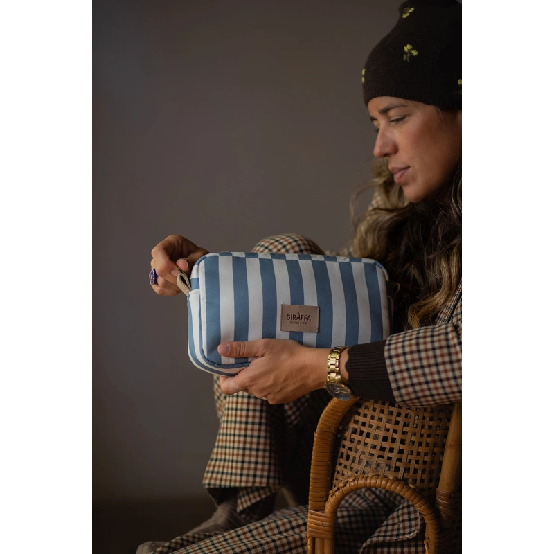 Los neceseres de La Giraffa Bianca e Blu son magníficos para llevar a todas partes ya sea en el bolso o en la cesta del carro. El tejido exterior es de algodón y el interior es muy mullido y totalmente impermeable,además cuenta con un par de bolsillos para tener todo siempre organizado.